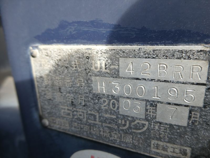 | ユニック UL-42BRR H300195 2003/7製 エア漏れあり 荷台床鉄板張り 全体サビ傷あり ウィンチあり |