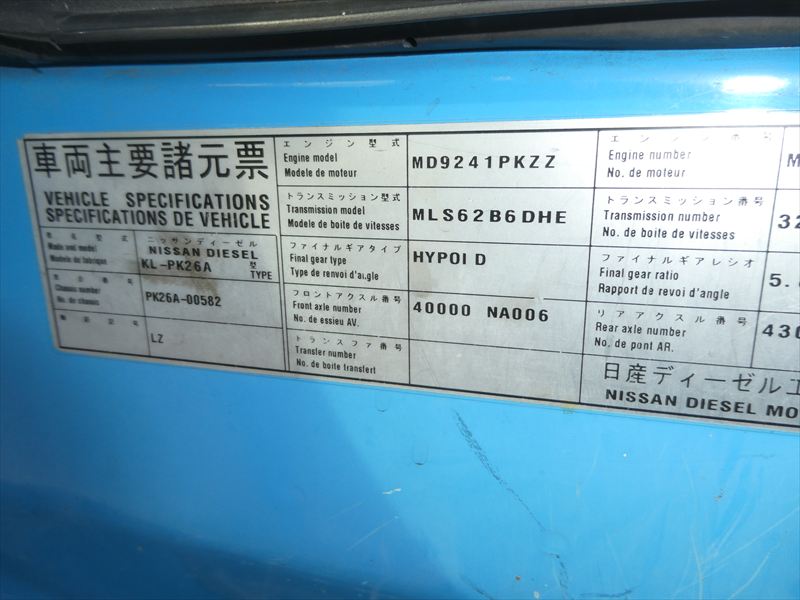 | ニッサンディーゼル | H15 | KL-PK26A | セルフ |